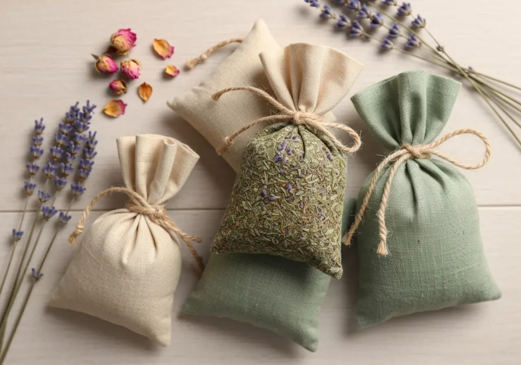Portable botanical companions filled with hand-selected dried herbs. Perfect for bedrooms, closets, travel bags, or personal carry. Each sachet releases gentle, natural aroma that lasts for months.